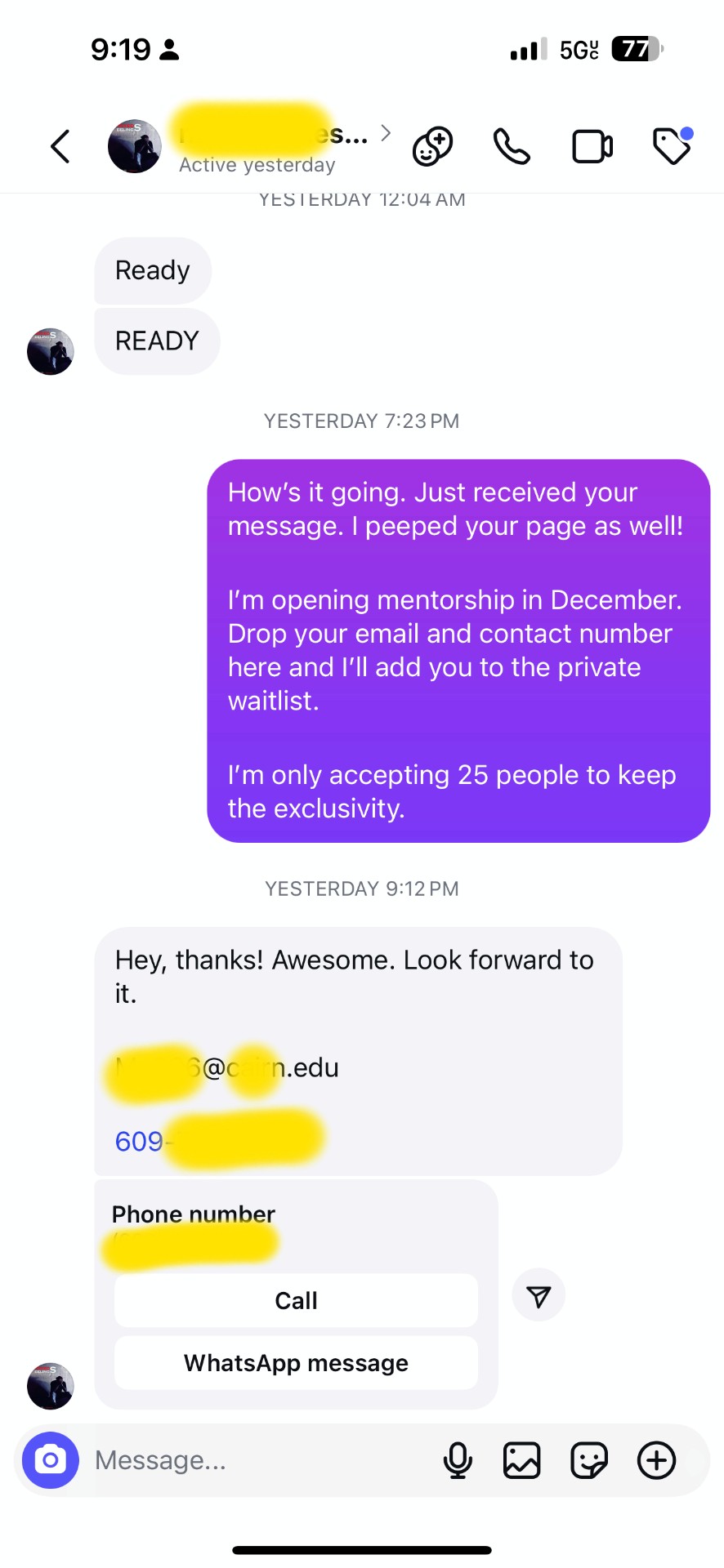 Btw here's my Instagram again: @pursuitreg with even more value to prepare you for the call